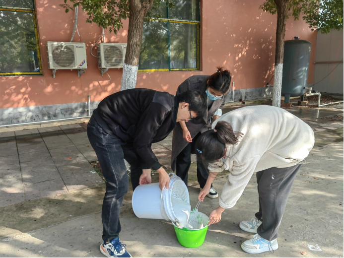 2022.11.24-11.25,结合园林工程技术专业和园艺技术专业教学内容和基地需求,taptap点点官方网站在做好疫情防控的前提下,组织21园林工程技术专业和21园艺技术专业学生对惠济医院园艺作物快繁实训基地园林树木、果树进行清园和树干涂白处理,树干涂白可防御冻害,防止害虫在树干上越冬,并杀死在树干上的病虫害。通过实习,同学们掌握了石硫合剂的配比和使用方法及用途,并参与园区绿化植物和果园的冬季管理,将理论知识应用与实践中,提高了同学们的动手能力。