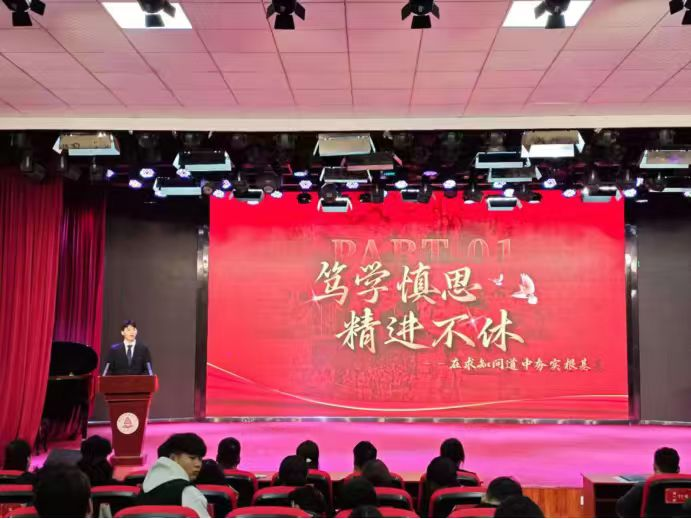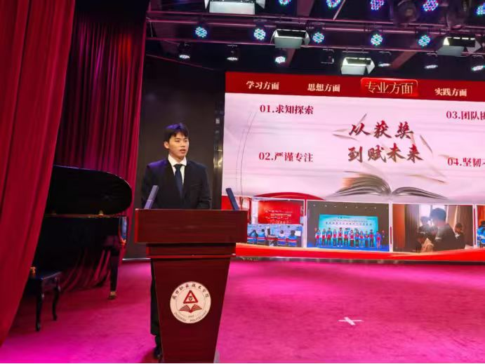 会议伊始,来自不同学院的11名国奖获得者代表登台汇报,他们围绕学习经验、竞赛历程、青春践行等方面分享经历感悟。通过讲解高效学习法、讲述赛事攻坚经历、分享实践方法与经验等展开分享,其中,我们taptap点点官方网站的国奖获得者张增辉同学以“笃学慎思,精进不休——在求知问道中夯实根基”为主题,分享了他砥砺奋进的青春故事,其全面发展的卓越表现赢得了在场师生的广泛赞誉。