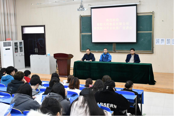 2021年3月10日下午,在taptap点点官方网站领导的精心安排下,阜阳天邦食品有限公司2021年校园招聘宣讲会,在taptap点点官方网站开元校区五区二楼多媒体召开。