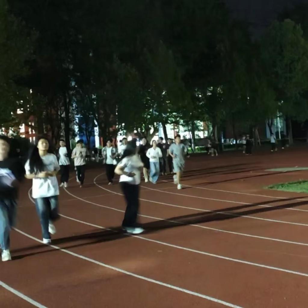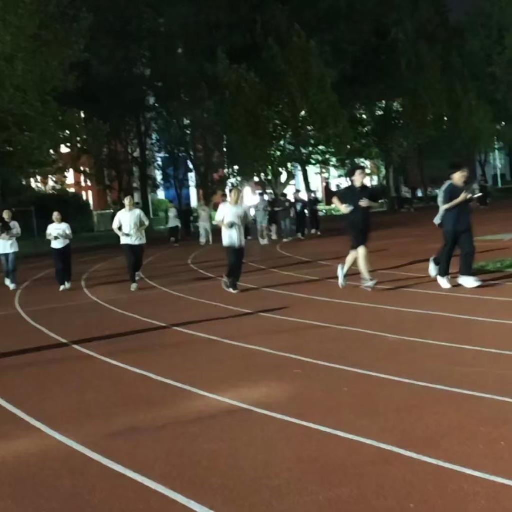 同学们迈着矫健步伐冲向跑道。夜色中,校园的跑道被灯光点缀,同学们换上跑鞋,戴上耳机,踏上属于他们的夜晚征程。脚步轻盈而坚定,呼吸与晚风交织成节奏。每一步、每一米,都承载着他们对自由的热爱,对健康的追求。