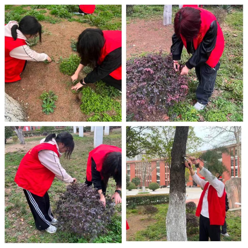 活动现场,同学们热情满满,纷纷化身“护绿小能手”,助力绿植更好地生长。他们分工协作,或手持修剪工具精心打理,或帮忙清理修剪下的枝叶,充分展现了新时代青年积极向上、乐于奉献的精神风貌。