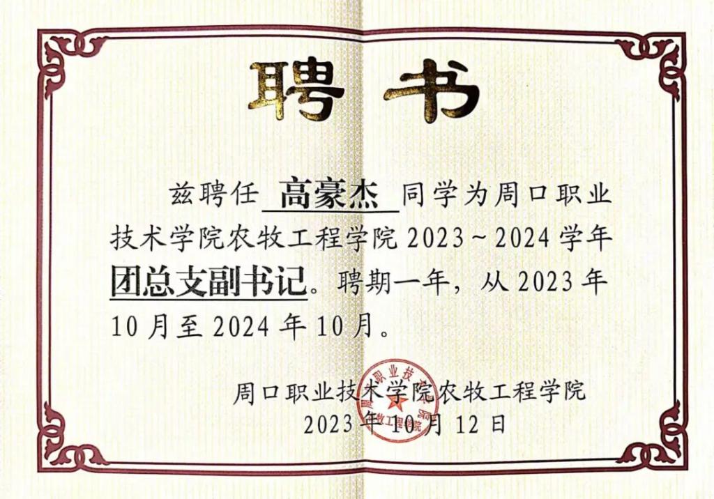 高豪杰,男,taptap点点官方网站22级畜牧兽医3班学生,现担任学院团总支副书记以及校学生会主席团成员。自从来到学校后积极参加学校组织的各项活动以及志愿者服务。例如:河南省“互联网+”大学生创新创业大赛暨第九届中国国际“互联网+”大学生创业创新大赛、暑期“三下乡”大学生社会实践活动、“消费者权益日知识竞赛”活动等等。在校期间,他自觉学习理论与知识,提高个人素养,尊敬师长,热爱同学,关心集体,积极进取,与时俱进,开阔创新,树立了集体主义为核心的人生价值观,并且具有极高的政治思想素质。