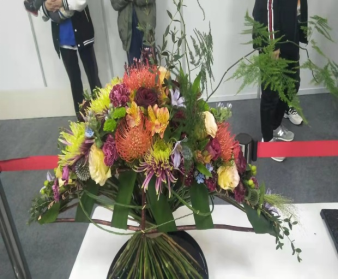 花艺赛项是依据高素质技术技能人才培养要求,对接花艺师的职业标准,结合职业岗位对人才的知识、技能、素养要求而设置。花艺竞赛项目包括中国传统插花作品创作与现代花艺作品创作两个竞赛内容。现代花艺部分比赛时长 7 小时,共三个模块,花束、新娘花饰、切花装饰。中国传统插花部分比赛时长 4小时,共三个模块,瓶花、盘花、筒花。
