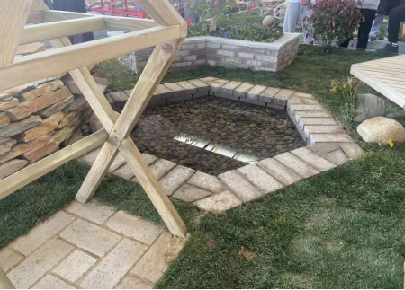 运用专业技能和工具切割、制作和安装天然石材、预制混凝土构件用于园路、平台等构筑物的施作,并力求切割面平整、制作与安装尺寸精准。水景营造:利用给定的防水材料、给排水材料、卵石、景石等营造水池、喷泉、叠水等水景,水池无渗漏,正确安装潜水泵。